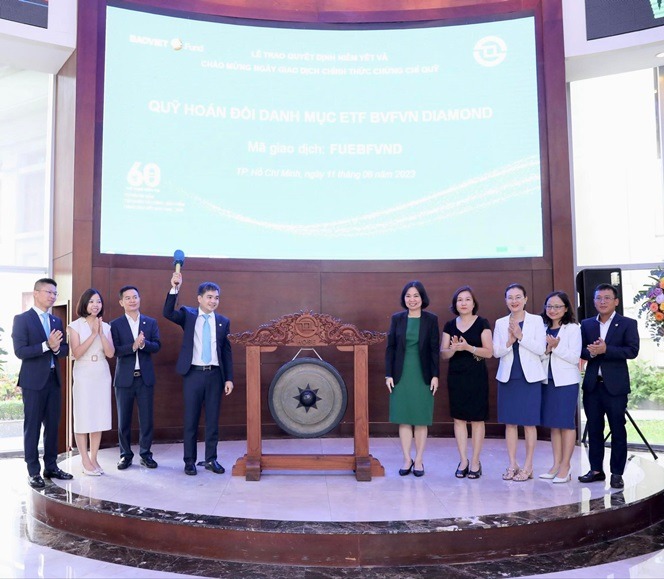 Ngày 11/8/2023 tại TP. Hồ Chí Minh đã diễn ra Lễ trao quyết định niêm yết 51 lô chứng chỉ quỹ ETF BVFVN DIAMOND (Mã giao dịch: FUEBFVND) do Công ty Quản lý Quỹ Bảo Việt quản lý.